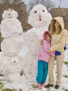 - The photo above in Brenda and our youngest daughter in our backyard building snowmen in Budapest about 2005. Jim put the snowball on top of each other with our help.